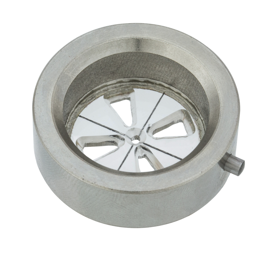 - Durchsichtige Zentrierscheibe mit Zentrumsbohrung